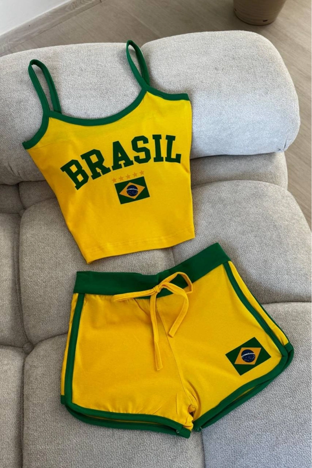 Brasil Şortlu Crop Takım - Sarı