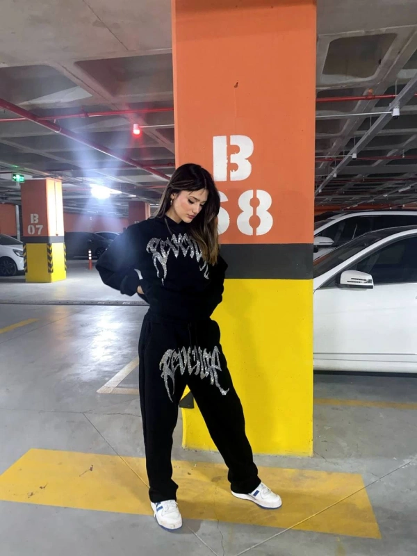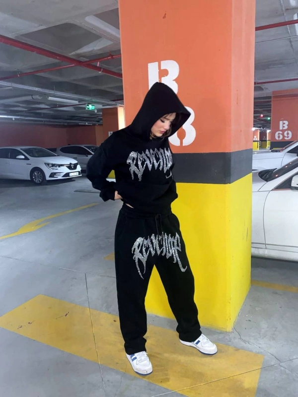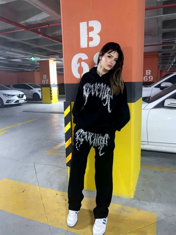 TAŞLI OVERSIZE TAKIM- SİYAH