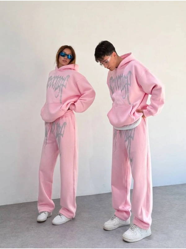 REVENGE TAŞLI OVERSIZE TAKIM- PEMBE