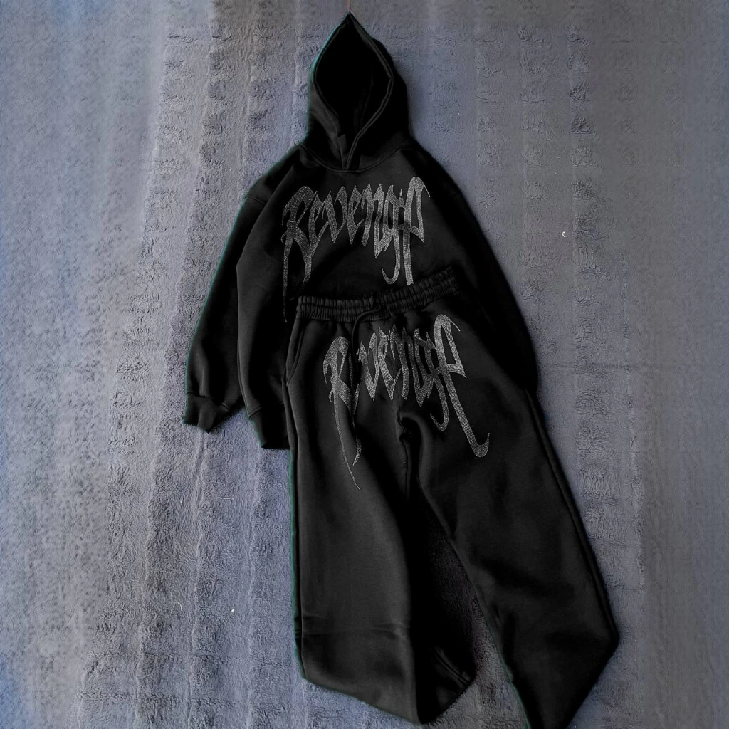 Taşlı Oversıze Takım- Siyah