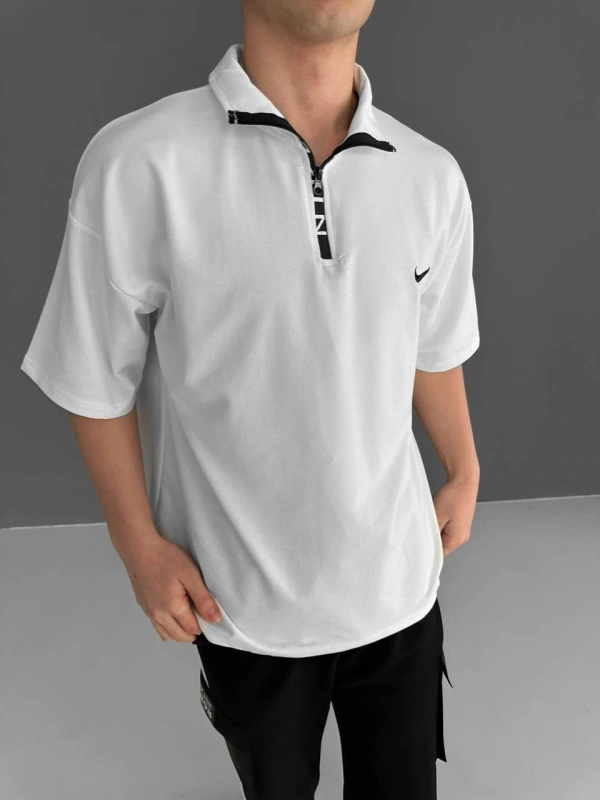 NK YARIM FERMUAR BEYAZ OVERSİZE TSHİRT