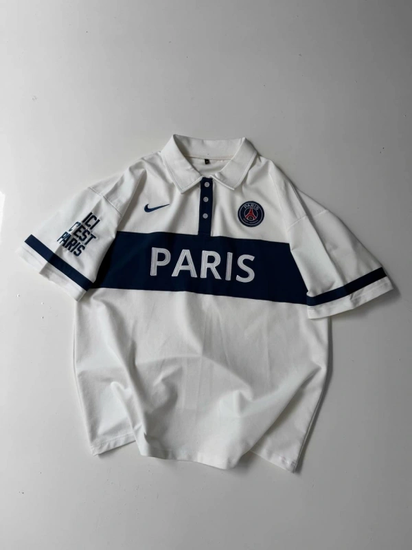 PSG POLO YAKA BEYAZ OVERSİZE TSHİRT